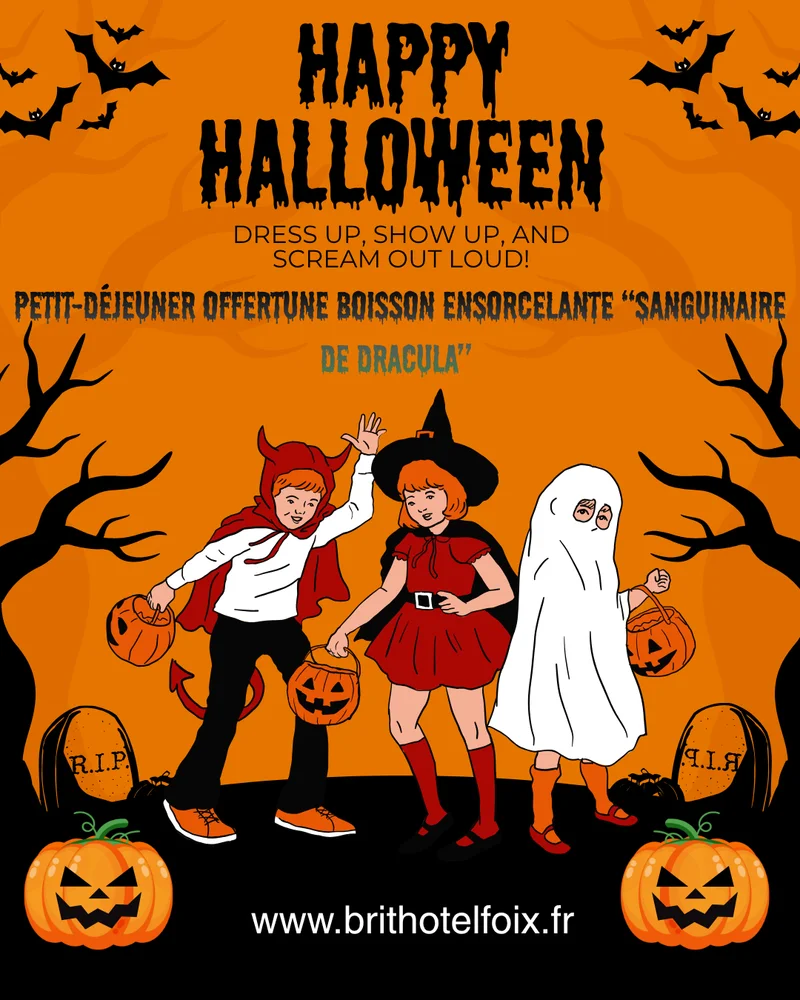 🍁 L’automne s’installe doucement à Foix, apportant avec lui une atmosphère de mystère et de magie. Au Brit Hôtel Foix, nous vous invitons à vivre une expérience unique pour Halloween. Notre hôtel se pare de ses plus beaux atours pour devenir un véritable repaire de douceur et de mystère. Entre la lueur des bougies et l’odeur envoûtante du café chaud, nous vous offrons un petit-déjeuner gourmand et une boisson ensorcelante, la fameuse “Sanguinaire de Dracula”, pour toute nuit passée chez nous. 🎃